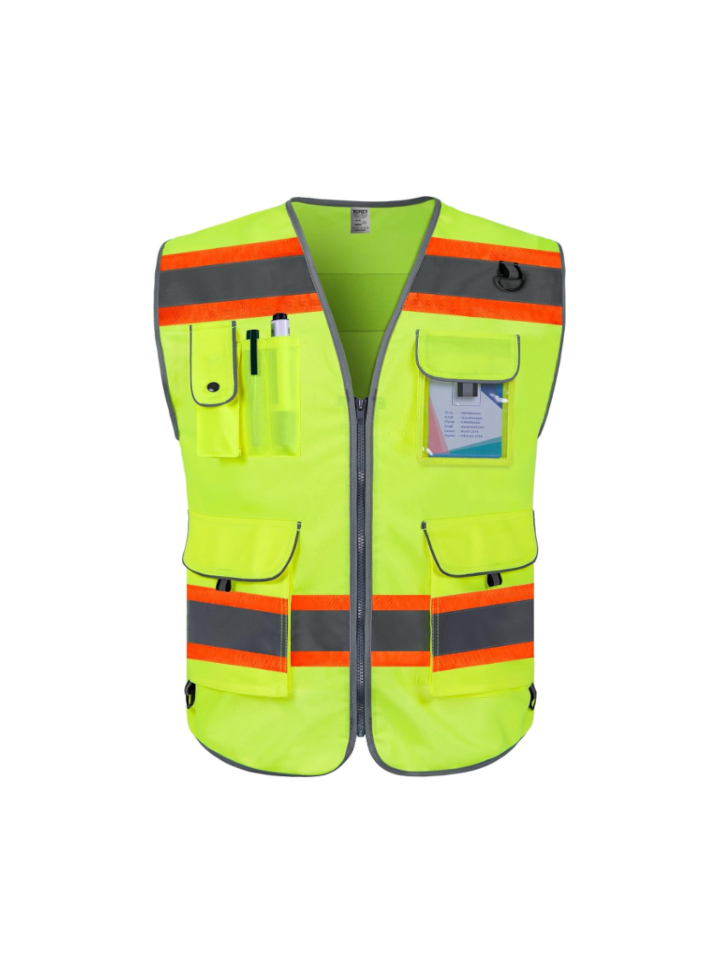 Description: Multi-Pocket High Visibility Reflective Vest Product model: ZB-V10-Y Reflective rate: ANSI 107 / EN 20471 Size: XS-8XL Color: Yellow Materials: 100% Polyester Knitted + 100% Polyester Mesh