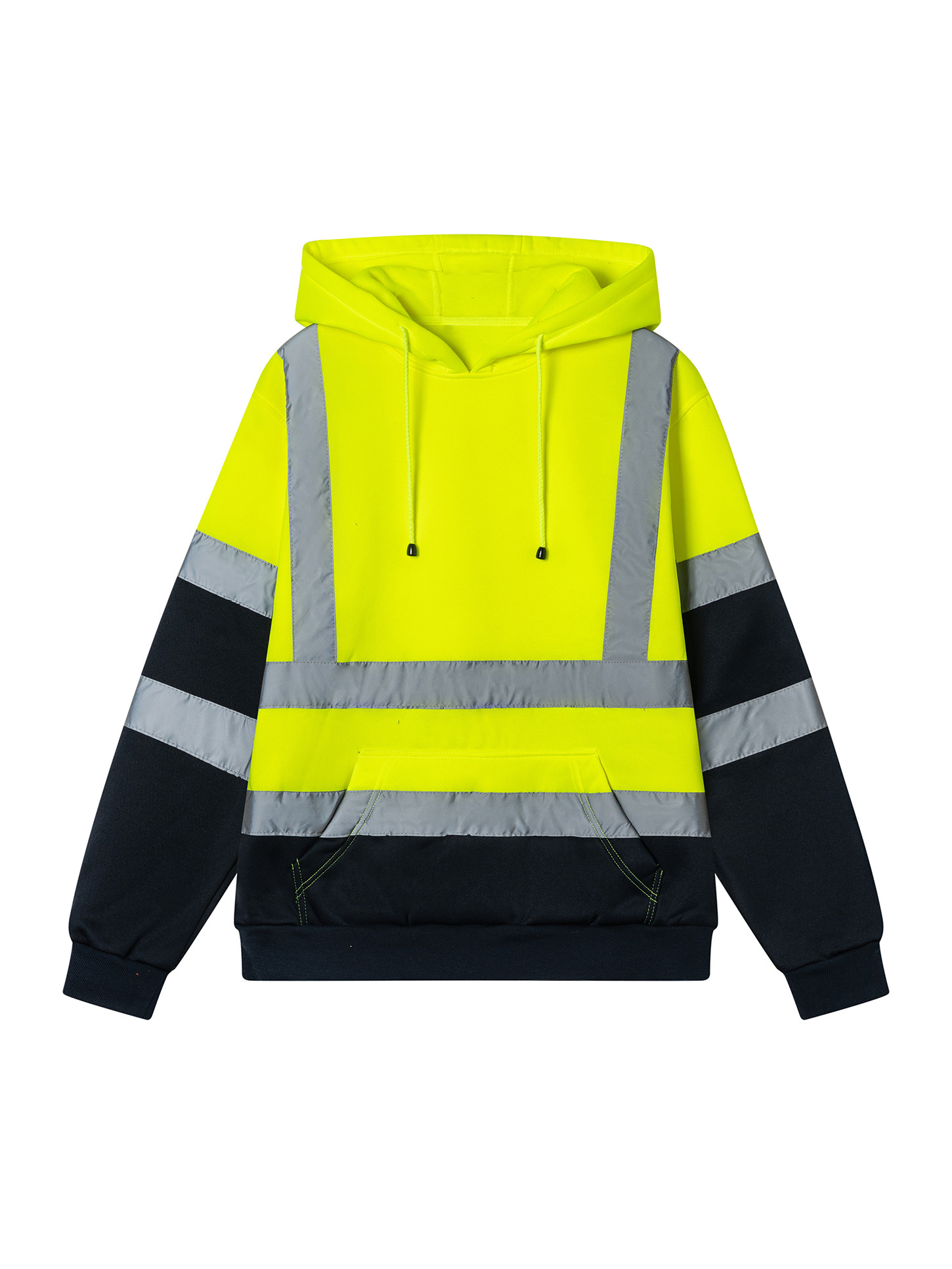 Description: Pullover Hooded High Visibility Reflective Sweatshirt Product model: ZB-JKH03-YB Reflective rate: ANSI 107 / EN 20471 Size: XS-8XL Color: Yellow with Black Materials: 100% Polyester 280gsm-300gsm fleece