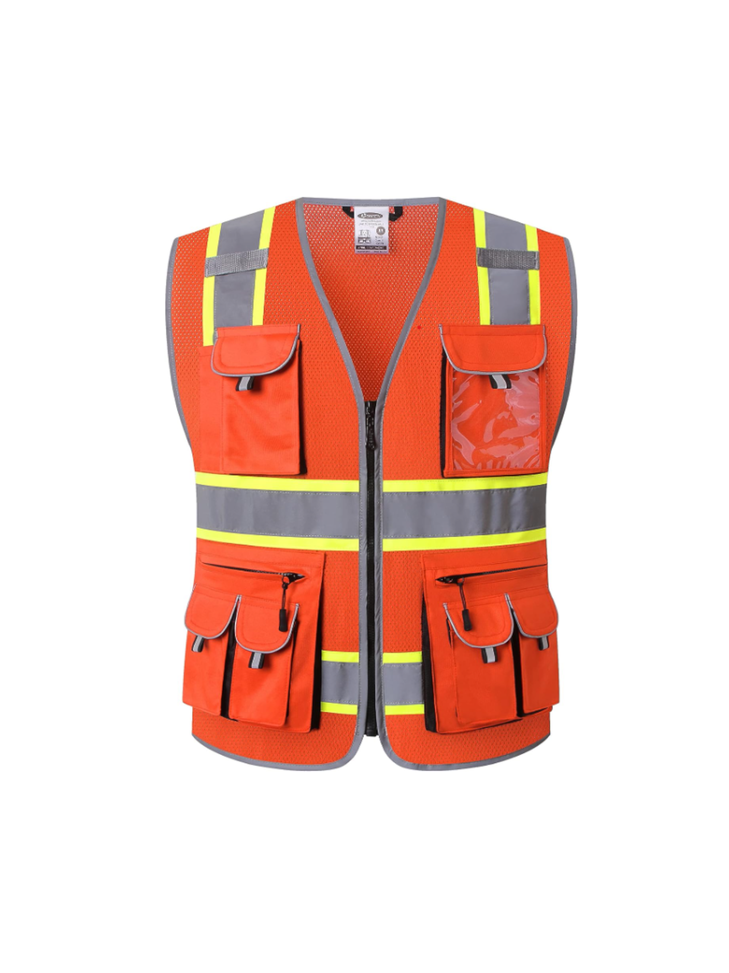 Description: Multi-Pocket High Visibility Reflective Vest Product model: ZB-V07-Y; ZB-V07-O Reflective rate: ANSI 107 / EN 20471 Size: XS-8XL Color: Yellow; Orange Materials: 100% Polyester Knitted + 100% Polyester Mesh